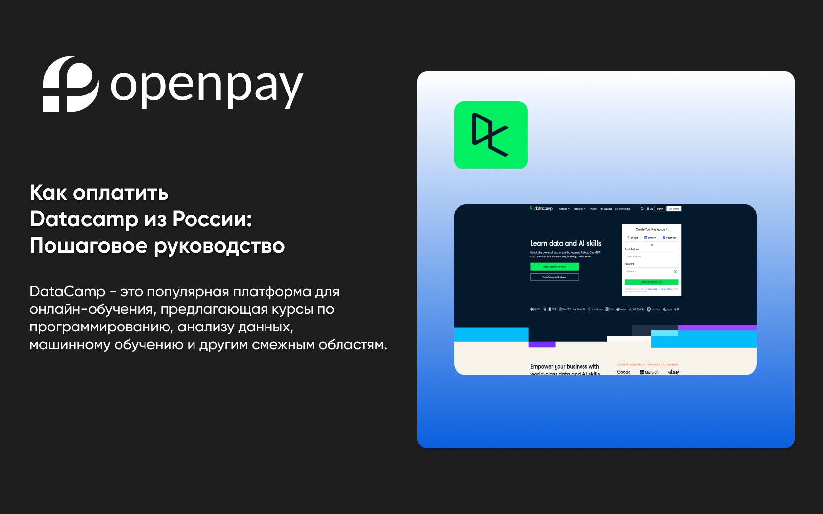 Как оплатить DataCamp из России с помощью OPEN PAY: Пошаговое руководство