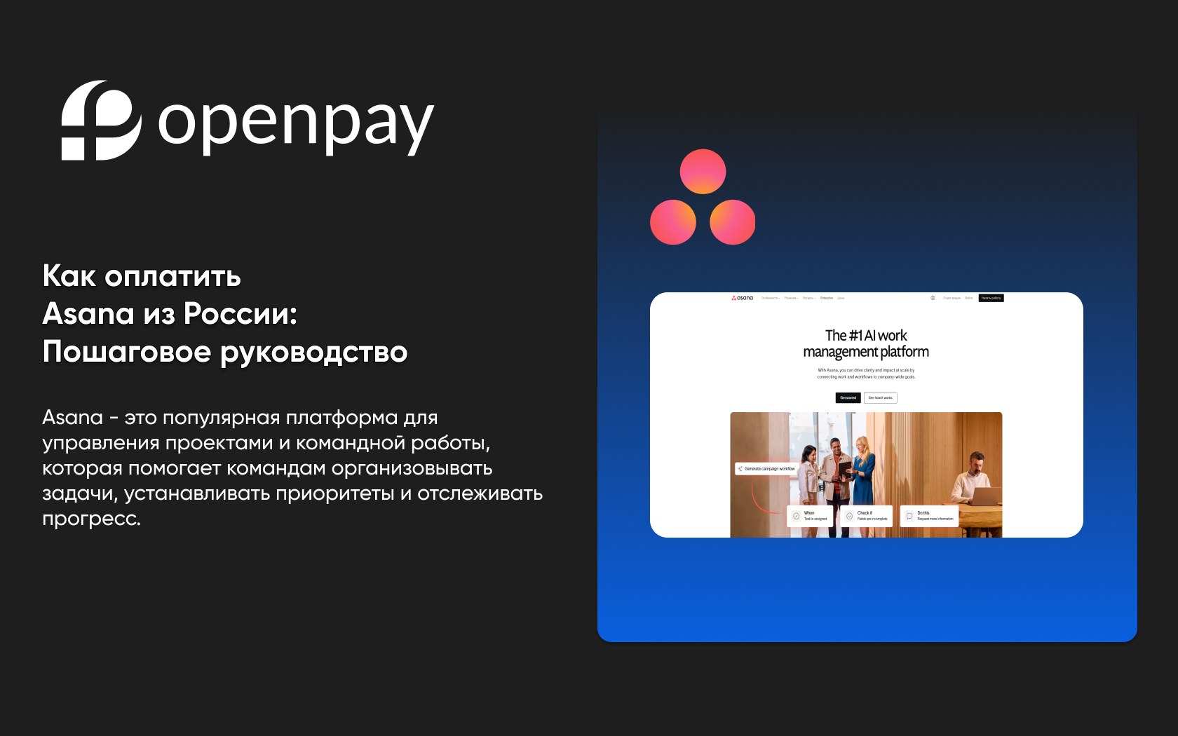 Как оплатить Asana из России с помощью OPEN PAY: Пошаговое руководство