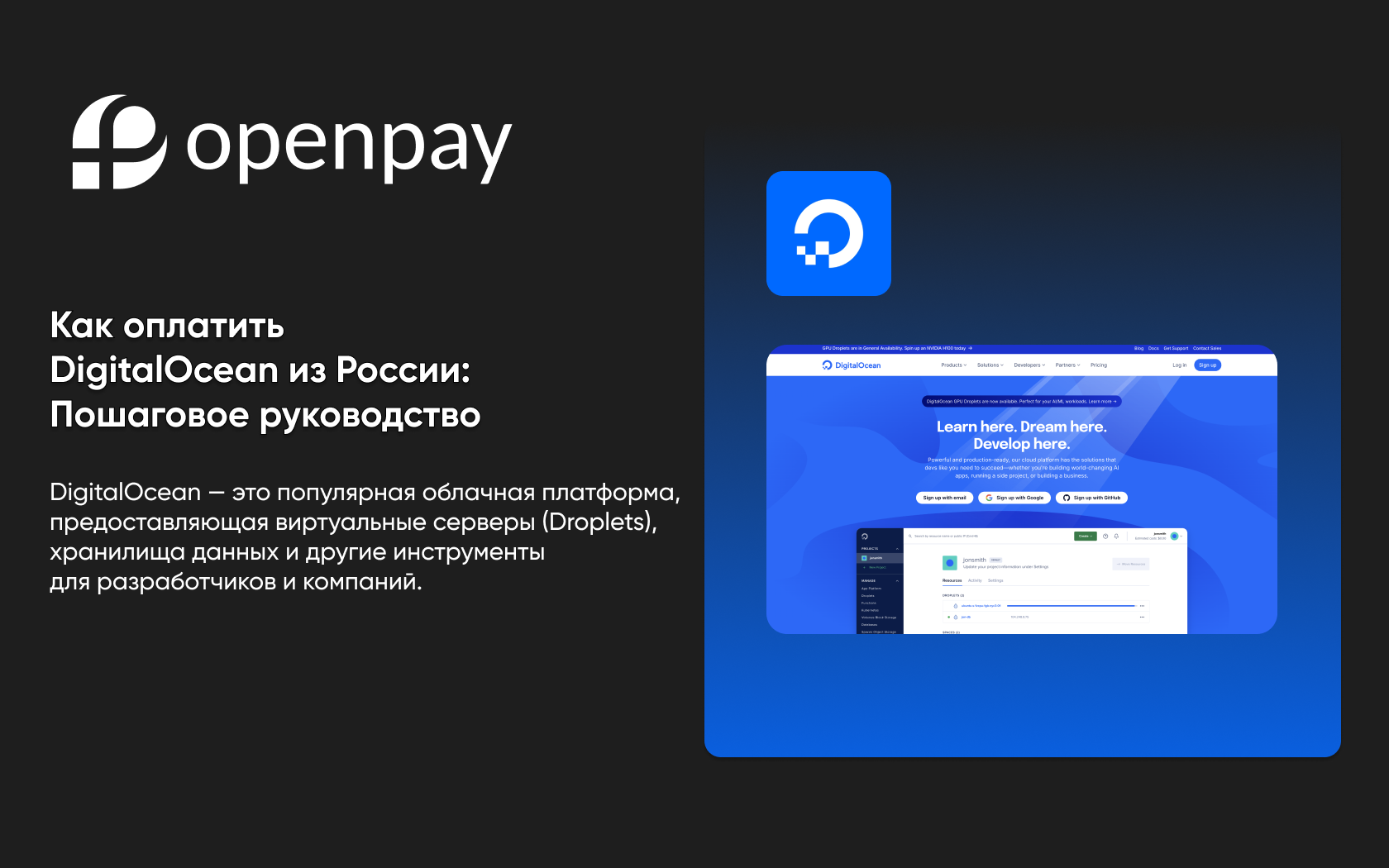 DigitalOcean — это популярная облачная платформа, предоставляющая виртуальные серверы (Droplets), хранилища данных и другие инструменты для разработчиков и компаний. Сервис позволяет быстро развернуть веб-приложения, базы данных и другие инфраструктурные решения. Однако пользователи из России могут столкнуться с трудностями при оплате подписки на DigitalOcean из-за текущих ограничений. В этой статье мы рассмотрим, как оплатить DigitalOcean из России с помощью OPEN PAY, чтобы продолжить использование всех возможностей платформы.